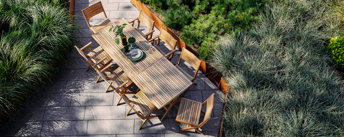 Danish design duo, Strand+Hvass have designed Flip, a reinterpretation of the classic folding chair and table. A simple and elegant look with captivating details. Both tables and chairs are collapsible so Flip is compact. It takes up little space folded up or folded out. Flip is ideal for smaller outdoor spaces or when there is limited storage space.