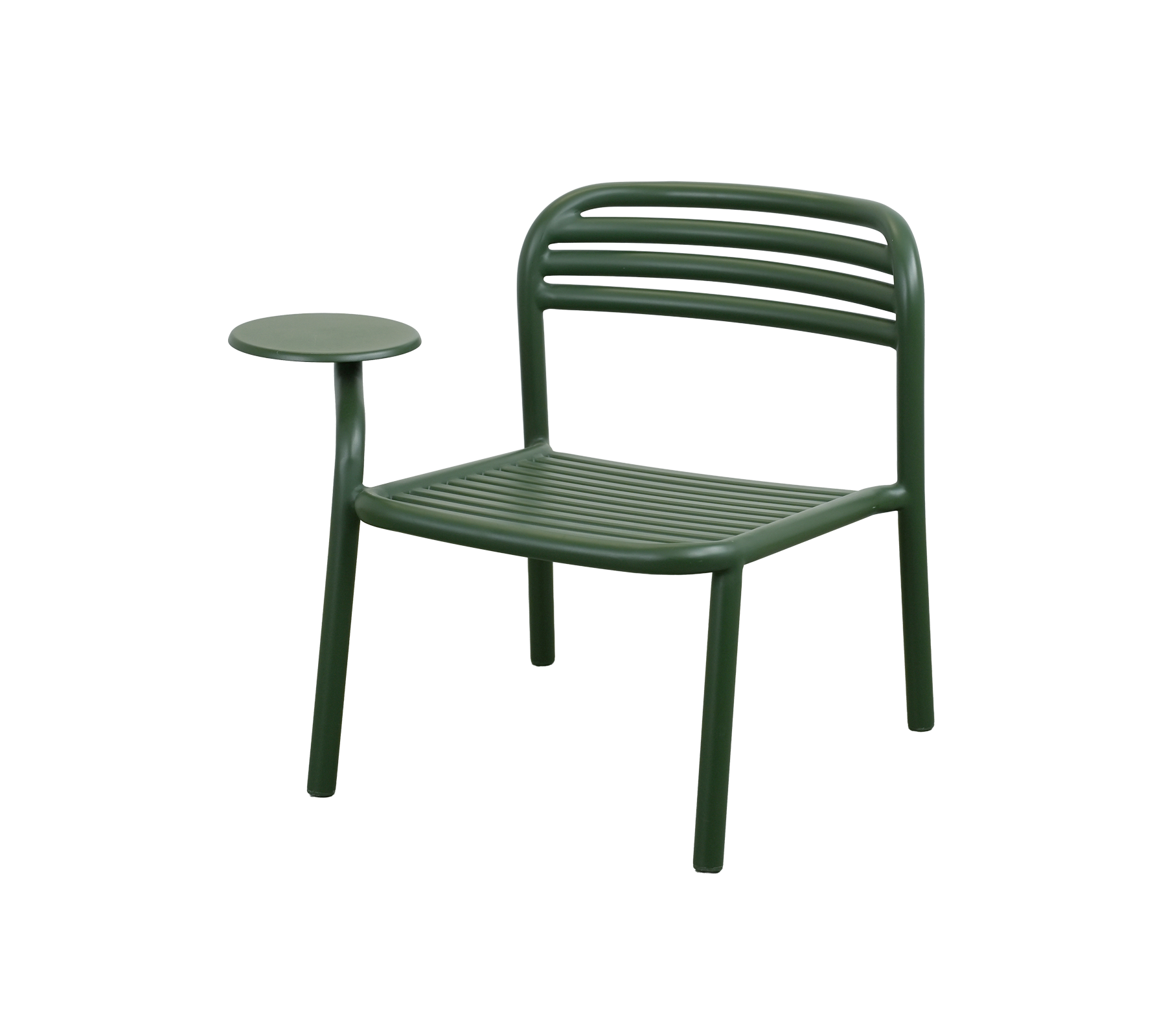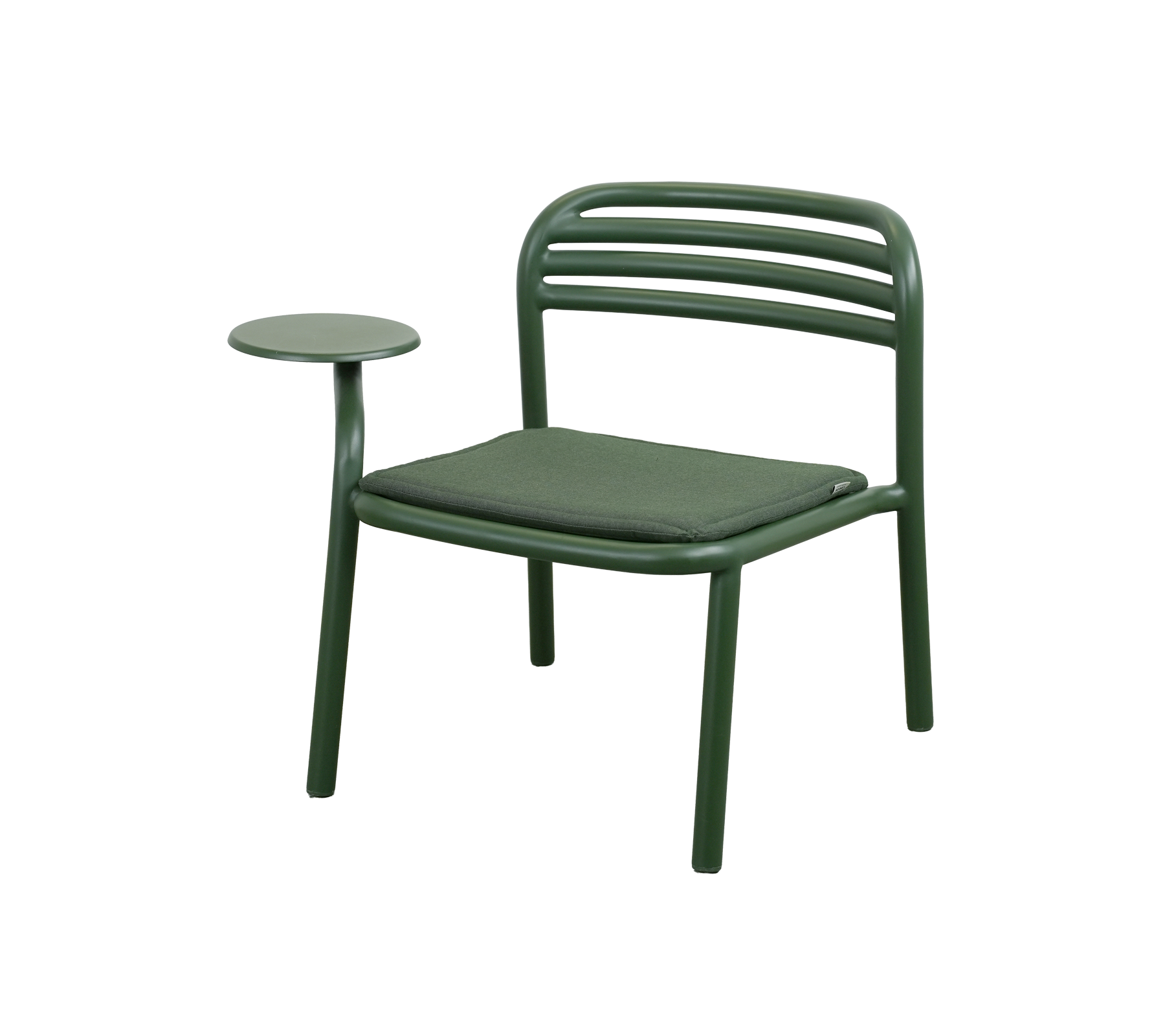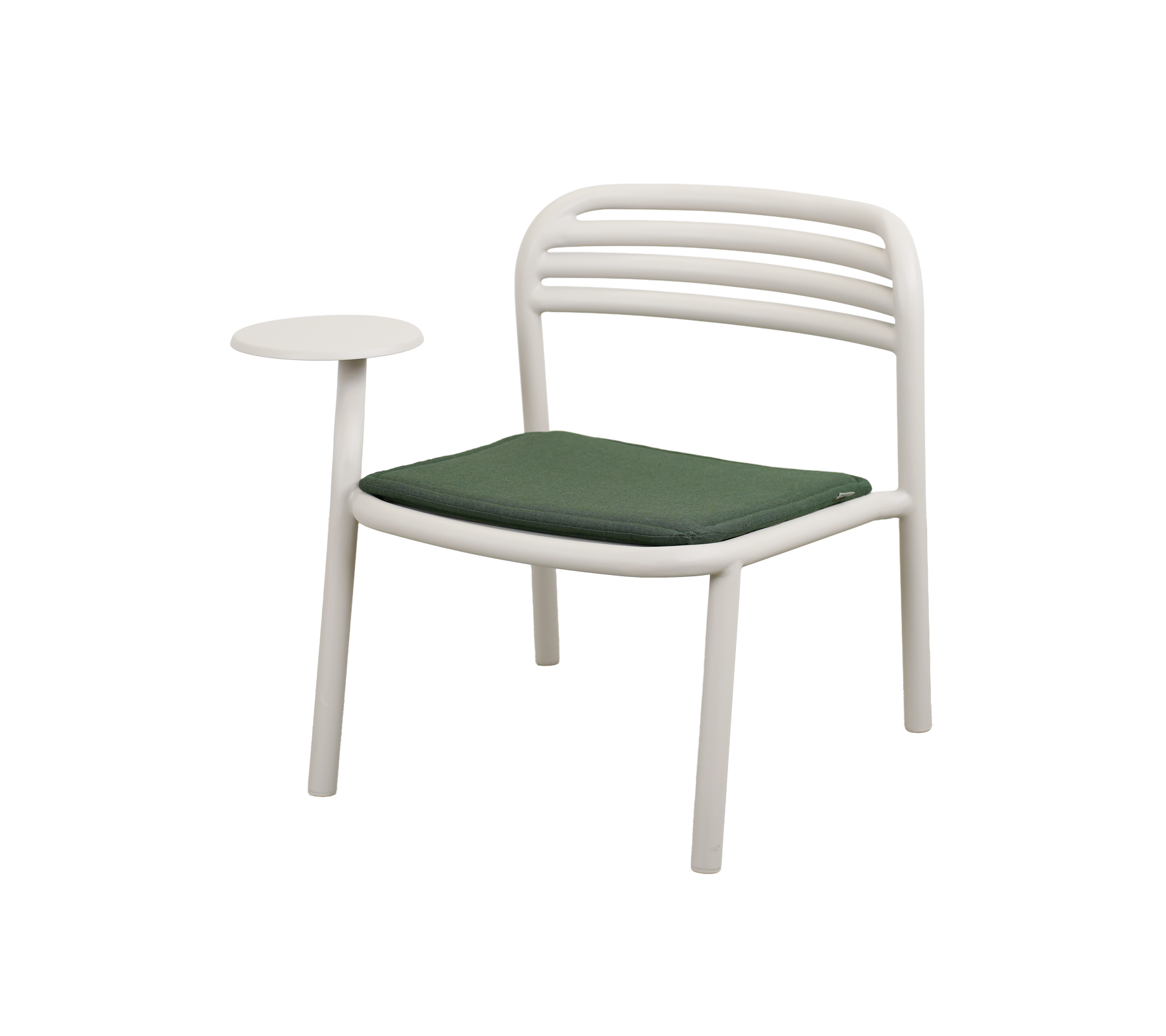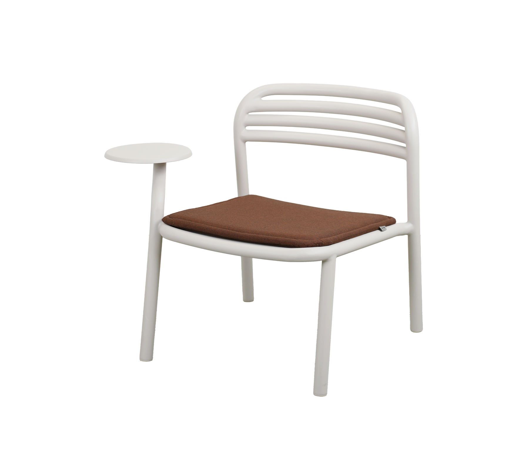 Balanced proportions and a calm design language make this piece ideal for hospitality spaces such as lobbies, halls and lounges, or private gardens and terraces. Combine several Bliss lounge chairs in different colours and enhance the comfort with the tailored Bliss lounge chair seat cushion, which also fits the Bliss lounge chair without side table.