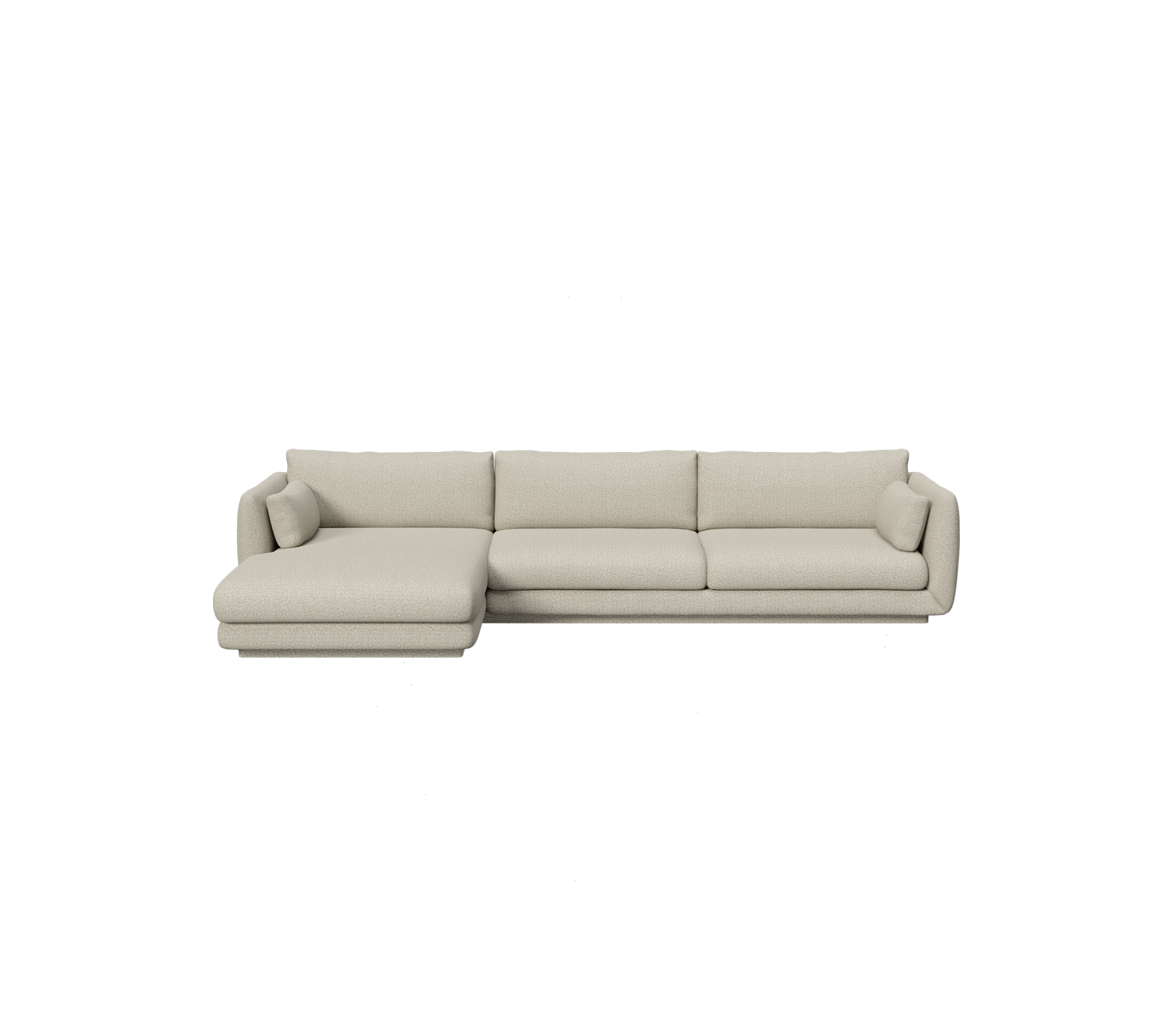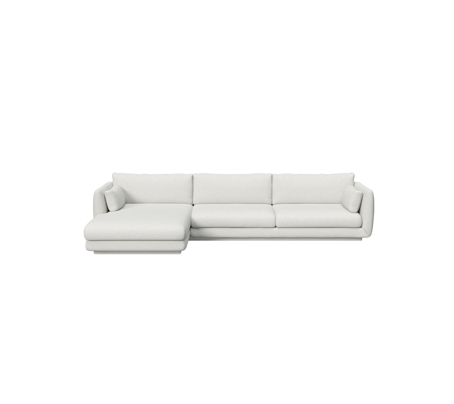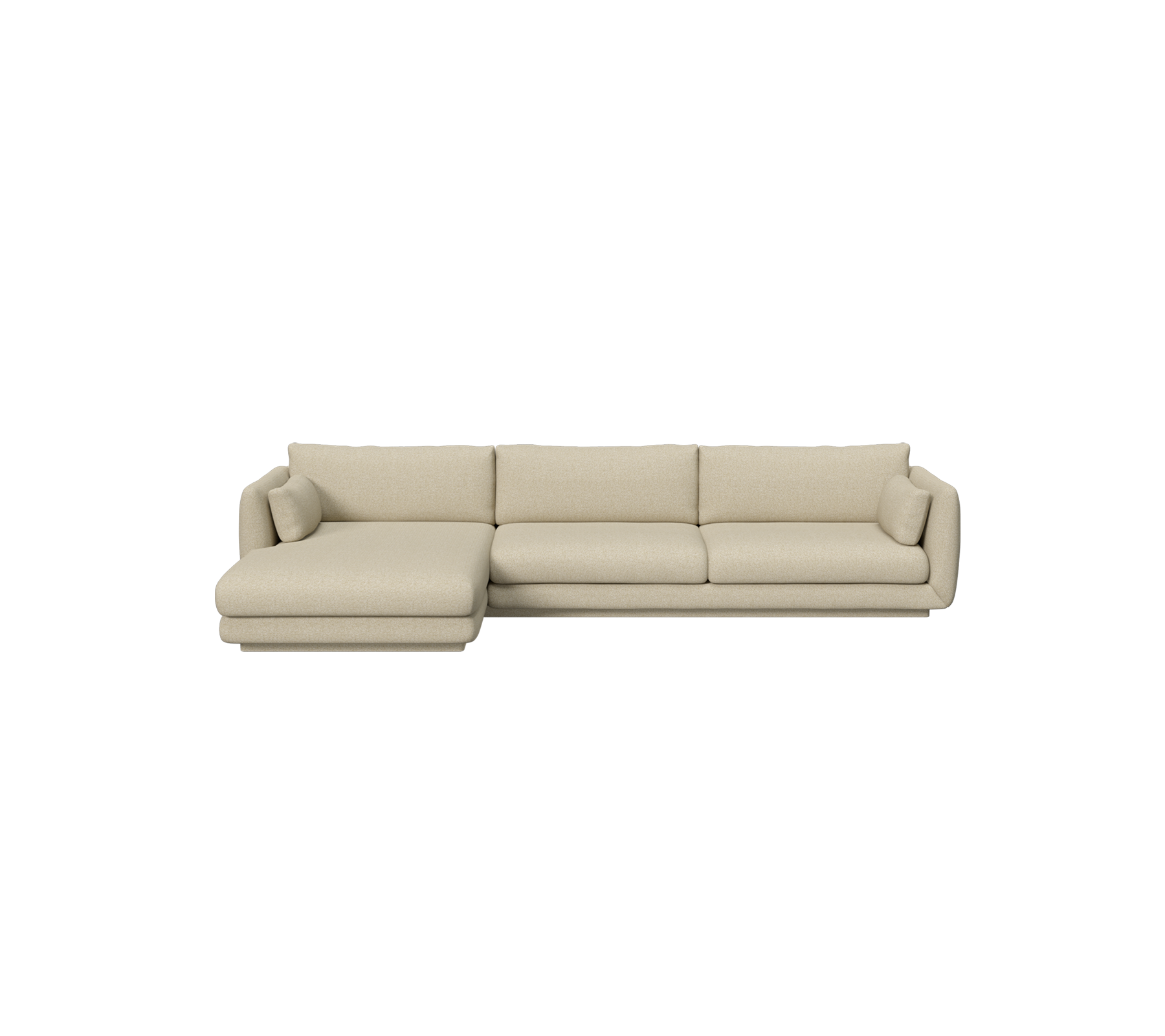 Designed by Cane-line, this Bloom 3-seater sofa with right-hand chaise longue offers generous seating in a sculptural form. The low plinth base and clean silhouette create a calm and refined balance, while the fully upholstered design and soft, supportive cushions ensure lasting comfort. The chaise longue invites relaxed moments - perfect in living rooms as well as refined lounge spaces. For other layout options, explore the left-hand plinth version or the right-hand teak variant.
