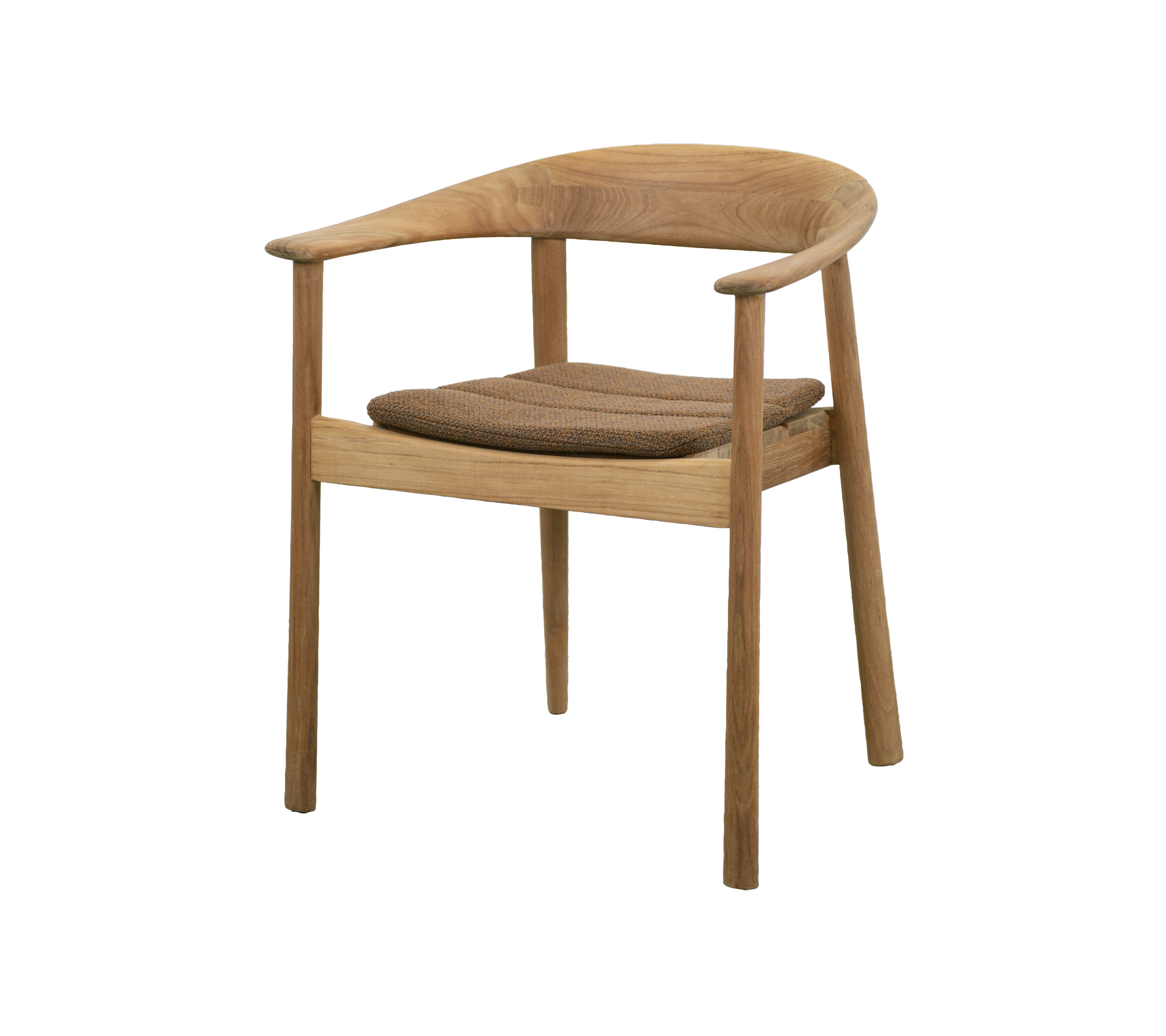 Equally suited around the dining table outdoors or as a stand-alone design piece indoors, the armchair’s minimalist expression is complemented by rounded armrests that offer both visual softness and relaxed comfort. The armchair can be paired with the optional Majestic seat cushion for an added layer of comfort.