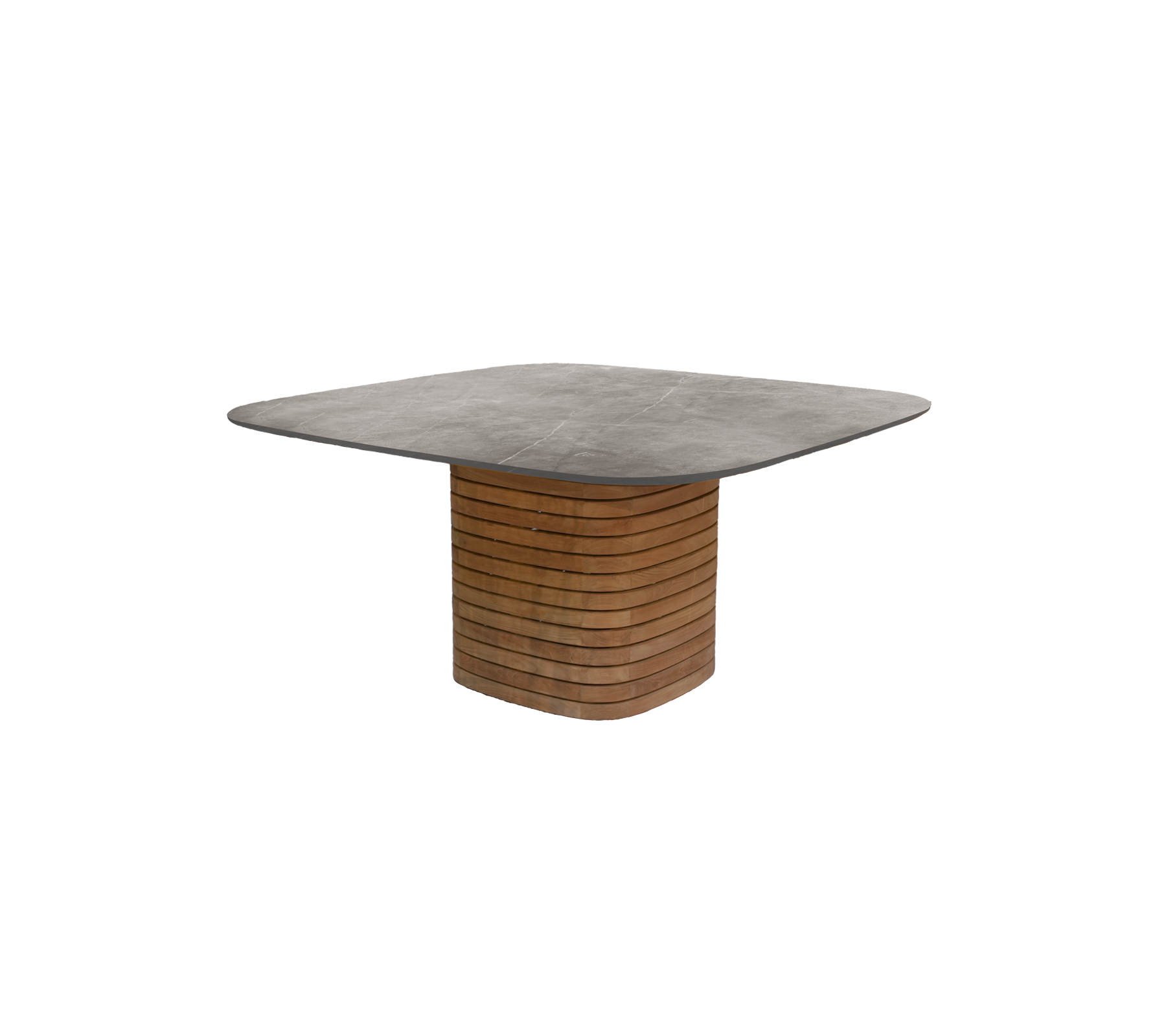 With its sculptural pillar base and generous tabletop (144 x 144 cm), featuring softly rounded corners, the square Mellow dining table by Cane-line Design sets the tone for contemporary outdoor gatherings. The table has a characteristic, sculptural expression that becomes an impressive focal point in outdoor dining areas - from garden terraces to rooftop settings. The table is made for togetherness - designed to invite long dinners and conversations under the open sky. Pair the square pillar base with a tabletop in your preferred material to suit the setting and achieve your desired atmosphere.