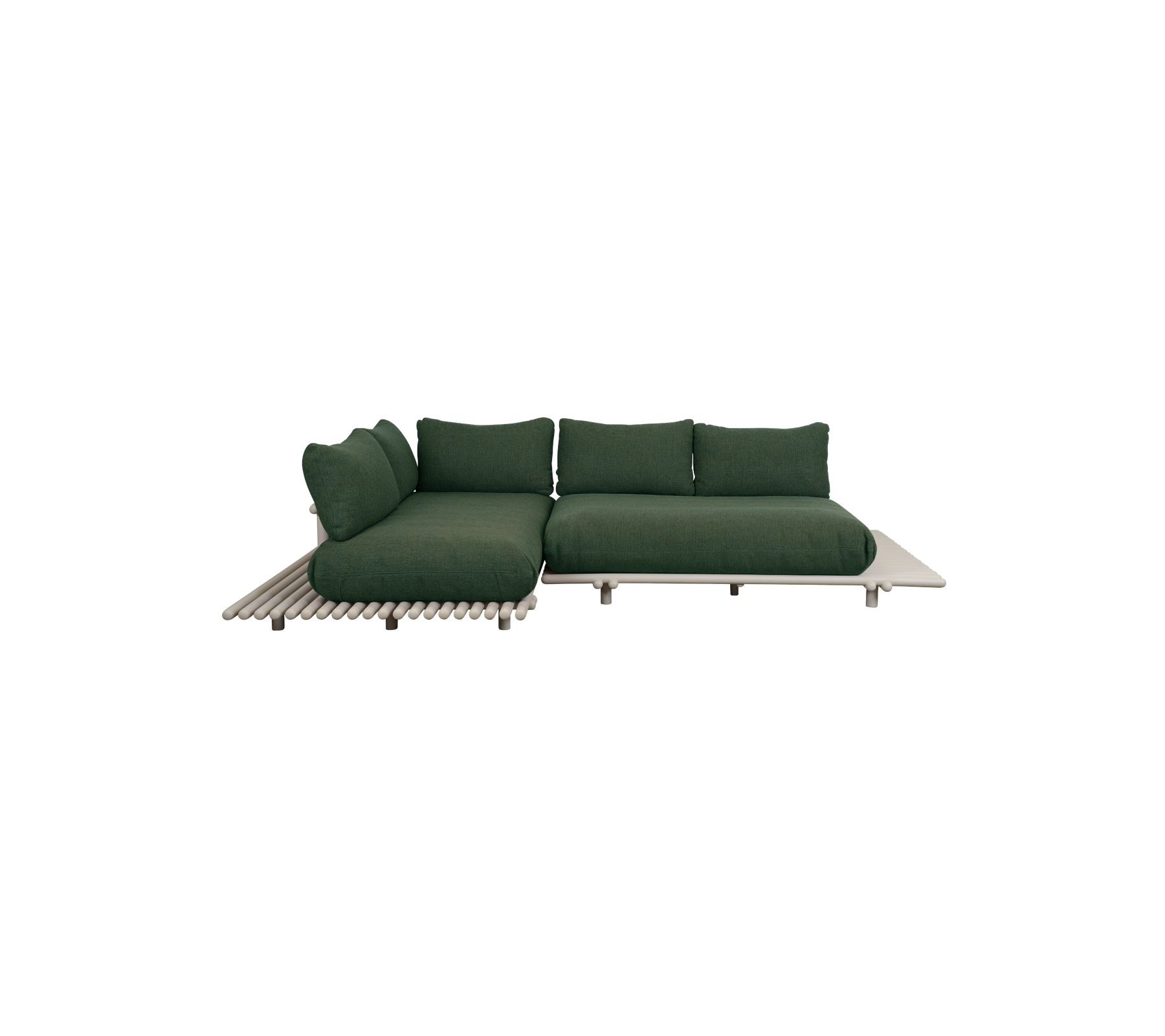 The Sticks Platform corner sofa, designed by Cane-line Design, blends casual comfort and sophisticated design, making it perfect for solo lounging or social gatherings. Its durable frame comes in certified teak, which gains a beautiful silver-grey patina over time. If you wish to preserve the original golden-brown colour, we recommend using our Teak Care products. The frame is also available in powder-coated aluminium with strong durability and low maintenance. The plush seating and back cushions are made with resilient fabric and feature the innovative QuickDry & Airflow system, providing quick-drying and optimal air circulation all year round, even after rain.